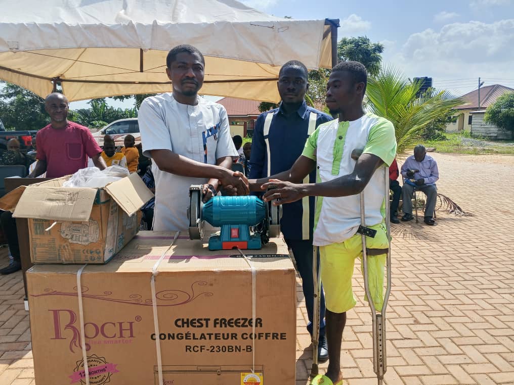 AHAFO ANO SOUTH EAST DCE ,HON IBRAHIM YAMBA NELSON ISSAKA and MP,HON YAKUBU MOHAMMED DISBURSES SUPPORT ITEMS TO PERSONS WITH DISABILITIES